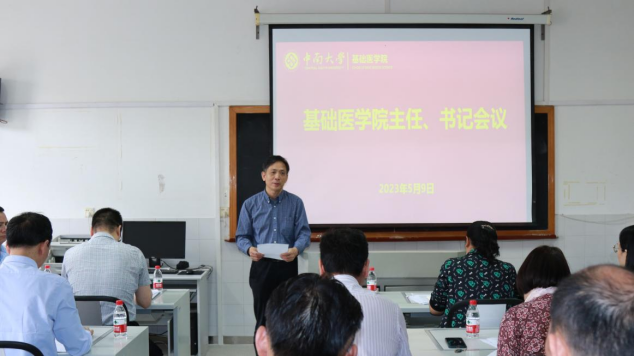 2023年5月9日中午,基础91AV 在孝骞楼352教室召开2023年系主任和支部书记会议,全体院领导、各系室所主任、各支部书记和院办相关工作人员参加会议。会议由院党委书记李顺长主持。