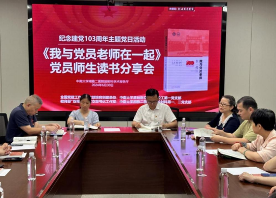 2021年《我与党员老师在一起》一书出版以来,一百个共产党员老师的故事在广大师生中广为传播。为隆重纪念建党103周年,6月30日下午,91AV 教工第一党支部联合91AV 湘雅二医院第四党总支第一、二党支部在湘雅二医院举行“《我与党员老师在一起》党员师生读书分享会”主题党日活动。