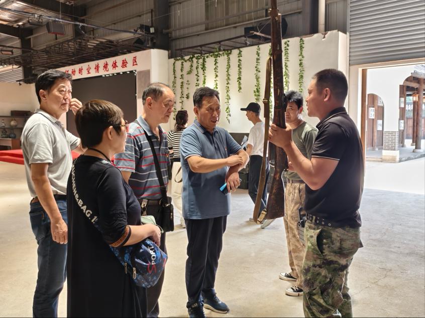 参观活动圆满结束后,全体党员同志前往乡村振兴实践基地“红动时空”进行学习体验,深入了解花明楼镇以党建为引领、红色文化传承、发展路径探索的乡村振兴实践经验。在红色影视文化展区,同志们亲身体验红色影视拍摄道具和场景布置,感悟红色影视教育的价值。
