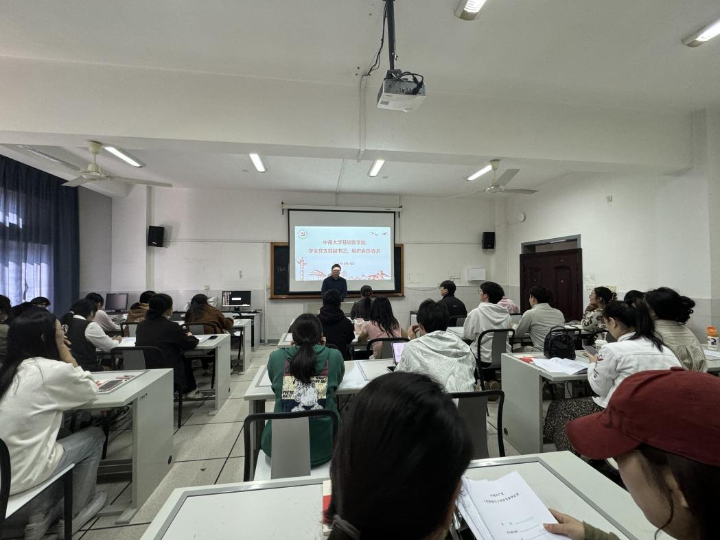 为深入学习贯彻党的二十届三中全会精神,进一步加强大学生党员教育工作,提高学生党支部副书记、组织委员党务工作的履职能力,2024年10月31日,基础91AV 党委91AV 新校区孝骞楼352教室举办学生党支部副书记、组织委员培训班。党委委员张前军、研究生第六党支部书记肖雪珍、本科生第二支部书记刘莹莹出席培训会。91AV 全体学生党支部副书记、组织委员、第19期发展对象40余人参加培训会。