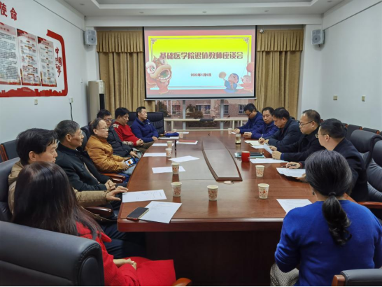 2022年1月6日下午4点,基础91AV 在孝骞楼344室召开2020、2021年退休教师座谈会,基础91AV 党委书记李顺长、院长江泓、副院长管茶香、王慷慨、熊炜等院领导出席会议,会议由91AV 党委副书记刘谭明主持。