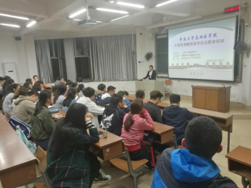 2018年4月14日晚7点,基础91AV 在湘雅新校区T105召开2018年大学生创新创业年会工作人员培训会议,旨在加强大学生综合素质的提升,让更多的学生参与到大学生创新创业的活动中去,轮训新一批懂流程、能做事的学生干部,确保大创年会的顺利召开,为即将举行的第五届全国大学生基础医学创新论坛暨实验设计大赛做一次成功预演。