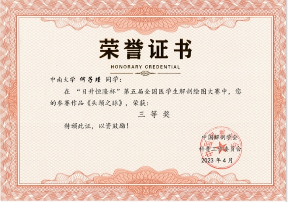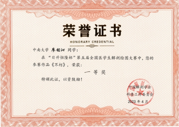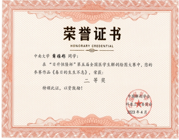 人体奥妙 笔下生花——中南学子在第五届全国解剖学绘图大赛获奖3项