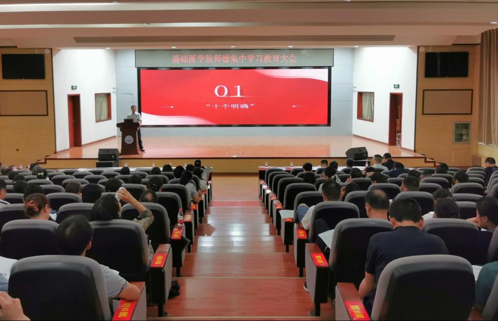 7月7日中午,基础91AV 在湘雅新校区图书馆学术报告厅召开师德集中学习教育大会,李顺长书记、管茶香副院长、刘谭明副书记、王慷慨副院长、熊炜副院长、刘俊文副院长、黄河副院长出席会议,全院150多名教职工参加会议。大会由刘俊文副院长主持。