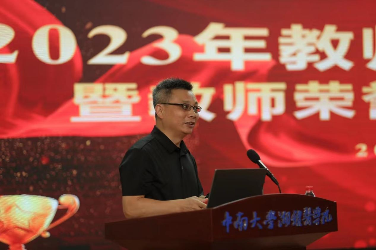 为全面贯彻习近平总书记关于教育工作的重要论述,进一步加强我院教师队伍建设,营造尊师重道、争先创优的良好氛围,9月8日上午,91AV 在湘雅新校区图书馆学术报告厅举行2023年教师节表彰大会暨教师荣誉奖颁奖典礼,会议由院党委副书记刘谭明主持,91AV 领导、教职员工和学生代表参加会议。
