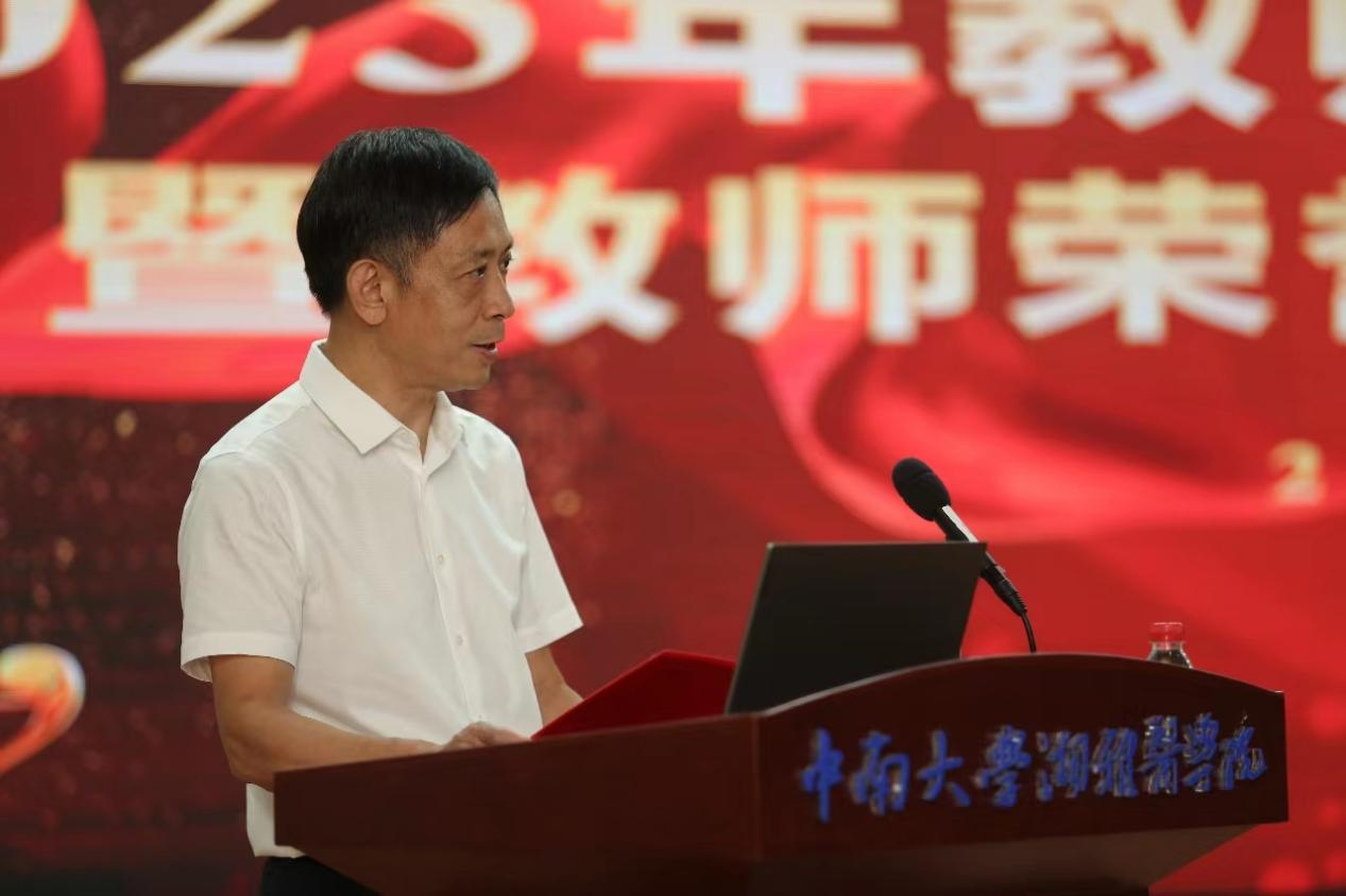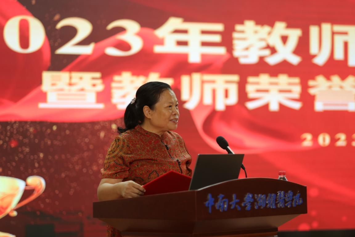 最后,管茶香副院长发表讲话。她表示,在授奖仪式上,既看到了德高望重、成就卓越的老前辈,也看到了热爱教育、锐意进取的新青年,这一“老”一“少”,一头连着“夕阳”,代表的是湘雅精神传承,一头连着“朝阳”,承载的是91AV 发展希望。她强调,广大教师要恪守教师职责、抱定报国志向,一是要为自己立德,做德为人先、行为世范的仁爱之师;二是要为学生立言,做授业解惑、传承学问的治学之师;三是要为国家立功,服务社会、兴医强国的实干之师。