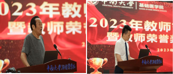 随后,两位获奖代表发表获奖感言。国家教学名师、基础91AV 原院长、卓越成就奖获得者文继舫教授表示,感谢91AV 历届领导老师的信任、支持和肯定,他将永远以91AV 为家,永远爱家、以爱育人,继续坚守好老师的初心和本分。优秀教师奖获得者王俊普副教授表示,作为一名教师,能得到同学的认可,是最大的满足和幸福,能得到91AV 的肯定,是最大的鼓励和鞭策,自己将珍惜荣誉、勤勉工作。
