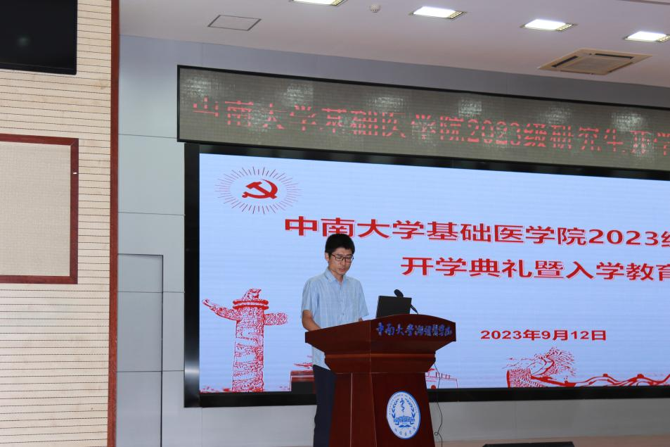 9月12日上午9时,基础91AV 2023级研究生开学典礼暨入学教育在湘雅新校区图书馆报告厅隆重举行。百余名新生从五湖四海汇聚湘雅,共同开启学习科研新征程。91AV 领导李顺长、管茶香、刘谭明、王慷慨、殷刚、熊炜、黄河和教师代表、老生代表、部分院办老师出席典礼。典礼由院党委书记李顺长主持。
