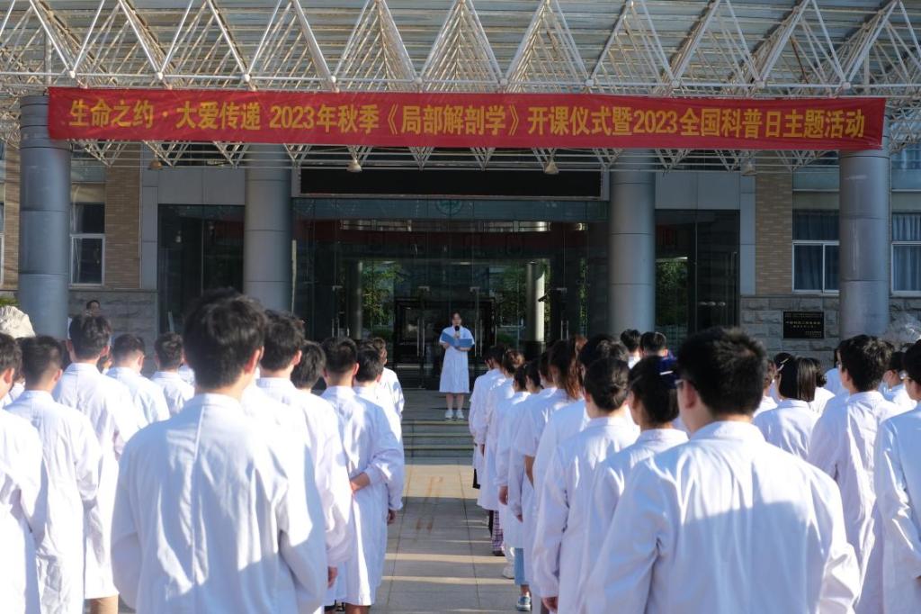 9月19日清晨,我院“生命之约·大爱传递”2023年秋季《局部解剖学》开课仪式在湘雅新校区福庆楼前坪广场隆重举行。91AV 党委常委、常务副校长、91AV 院长陈翔教授,基础91AV 党委书记王慷慨教授、院长熊炜教授、副院长黄河教授,湖南省解剖学会理事长潘爱华教授,91AV 教工第一支部全体党员,《局部解剖学》全体任课教师,91AV 临床医学八年制2020级、卓越医生班2021级全体学生与来自湖南师范大学91AV 、长沙卫生职业91AV 、湖南中医药大学、湖南中医药高等专科学校、长沙爱尔眼科角膜捐献中心等单位的代表共计150余人参加仪式。