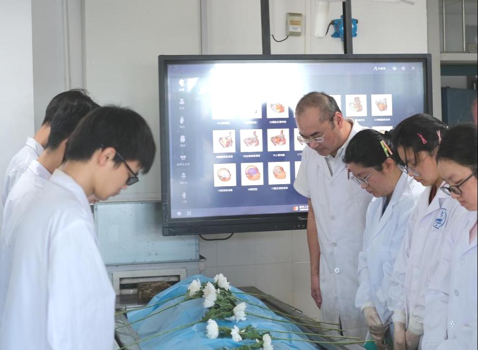 熊炜教授在致辞中表示,当今医学界还存在着数以万计的待解难题,“大体老师”对医学教学科研的探索与前进具有举足轻重的意义。他深情勉励在场学生:“请你们明白手术刀所代表的生命之重,感受到生命对医者的信任、健康对医者的希冀,请用最专业的态度对待每一次实验的机会!”