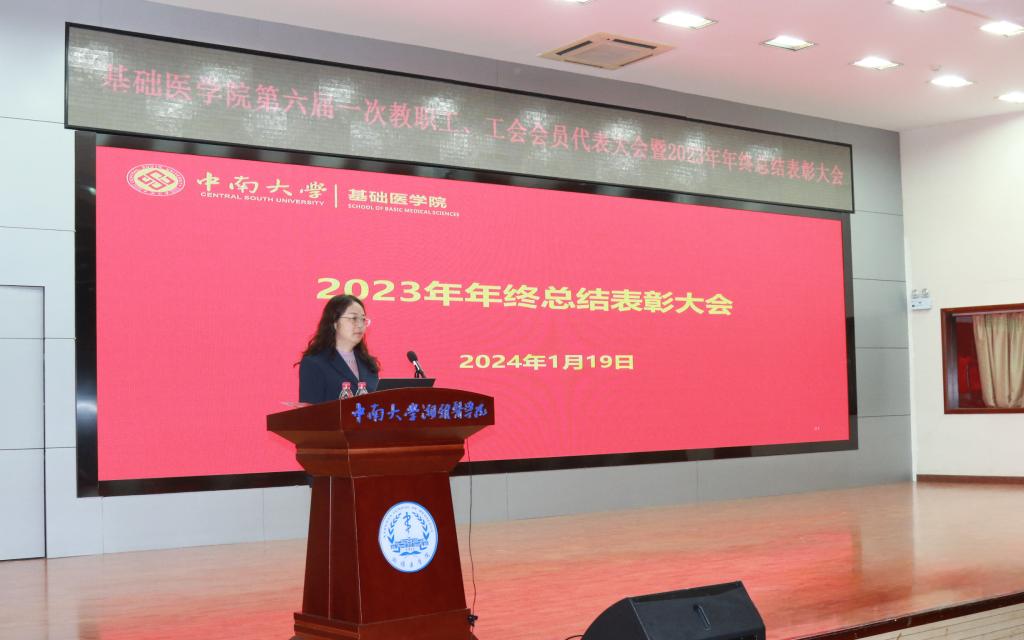1月19日下午,基础91AV 2023年年终总结表彰大会在湘雅91AV 新校区图书馆一楼报告厅举行,全体院领导和全院教职工参加大会。会议由冯虹副书记主持。