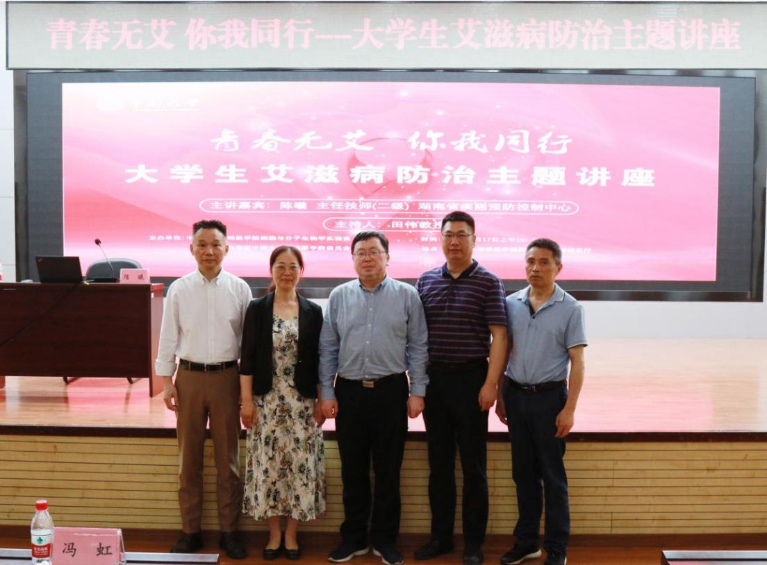为进一步加强艾滋病防治知识宣传,5月17日,91AV 在图书馆报告厅开展大学生艾滋病防治主题讲座,基础91AV 副院长黄河、党委副书记冯虹、微生物系主任刘水平参加,特邀湖南省疾病预防控制中心副主任陈曦主讲,细胞与分子生物学中心主任田伟主持。