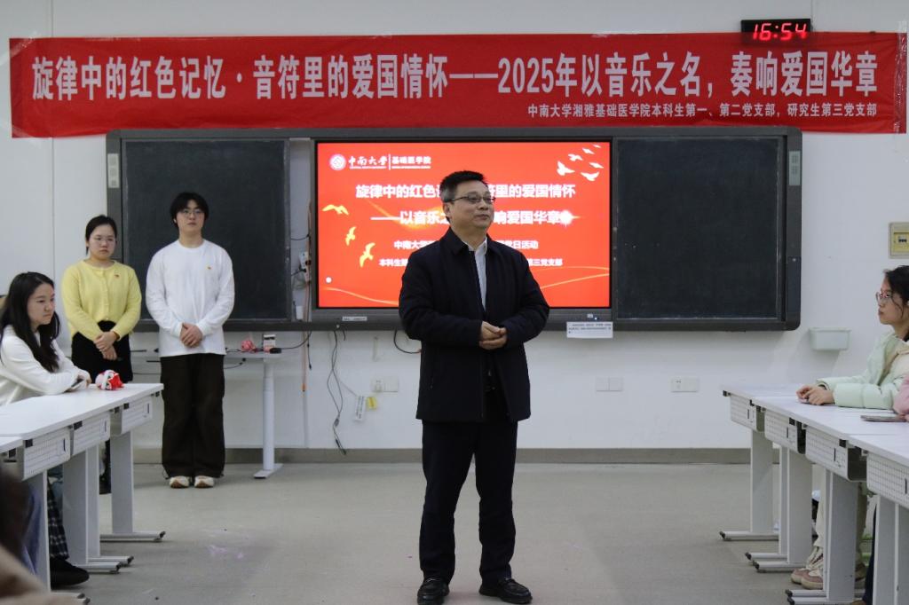 2025年1月8日,91AV 湘雅基础91AV 研究生第三党支部联合91AV 本科生第一、第二党支部开展以 “旋律中的红色记忆·音符里的爱国情怀——2025以音乐之名,奏响爱国华章” 为主题的党日活动。院党委书记王慷慨教授,研究生第三党支部书记毕晓艳老师,本科生支部周正和刘莹莹老师参加活动。