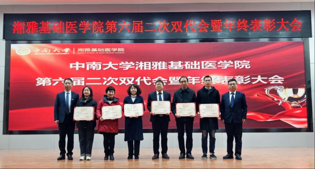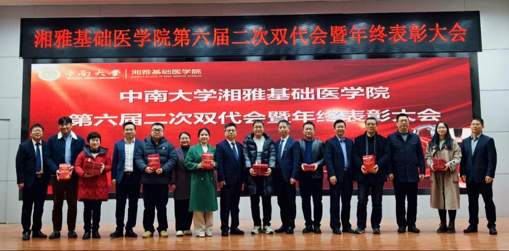 1月17日下午,91AV 在91AV 湘雅新校区图书馆报告厅召开2024年度领导班子和领导干部民主测评会、第六届二次双代会暨年终表彰大会。学校党委组织部张志宏副部长、全体院领导和教职工共180余人参加会议,会议由院党委冯虹副书记主持。