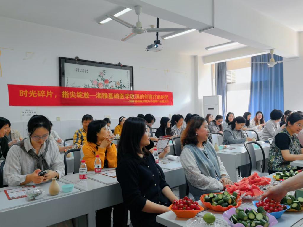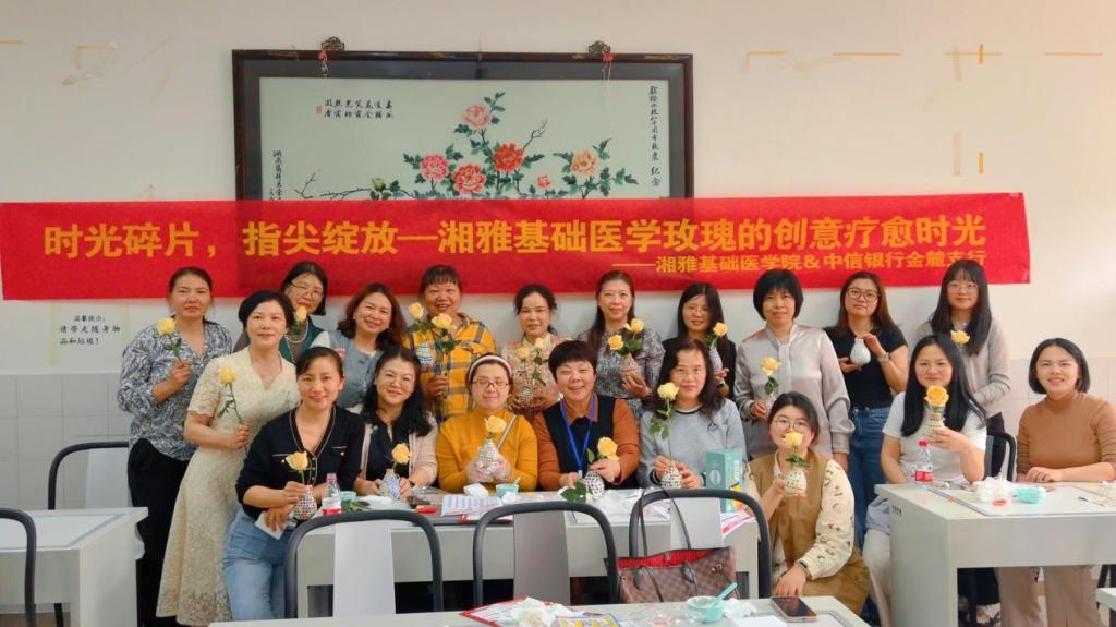 3月27日下午,91AV 工会精心筹备,组织女职工们开展了“时光碎片,指尖绽放——湘雅基础医学玫瑰的创意疗愈时光”活动。活动中,大家沉浸式地享受着创意手工带来的乐趣,让思维与灵感在指尖尽情碰撞,悠然品味下午茶,品尝清甜的水果,为身心补充满满能量。