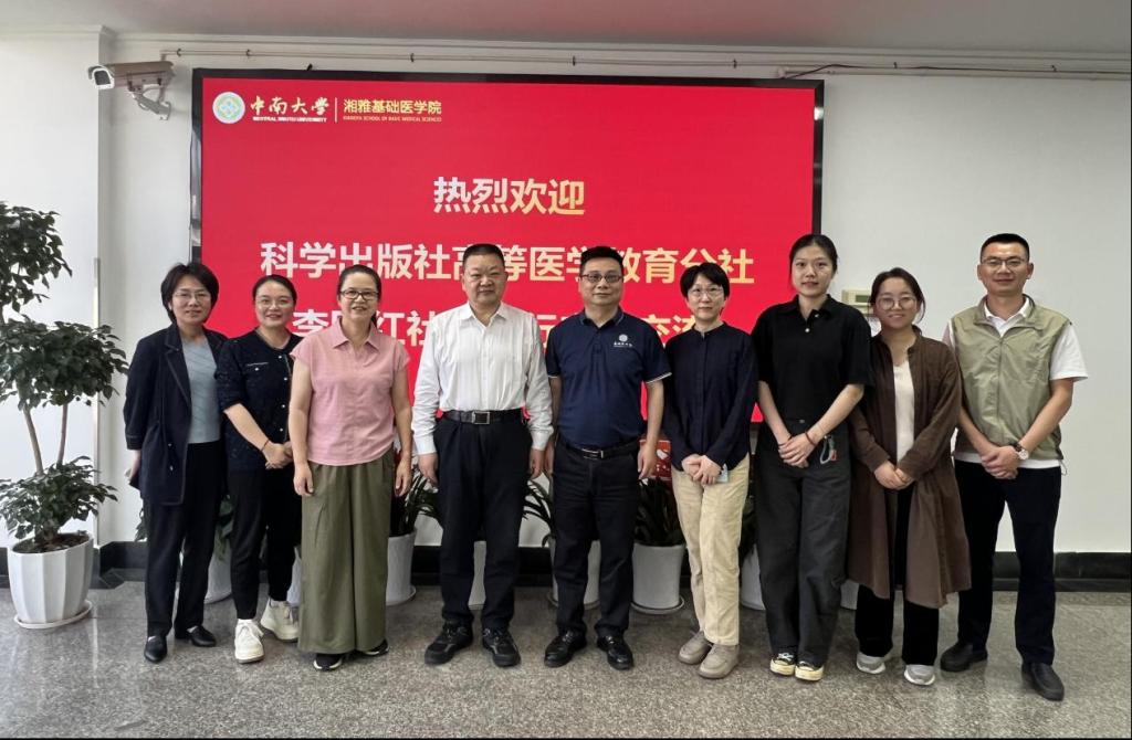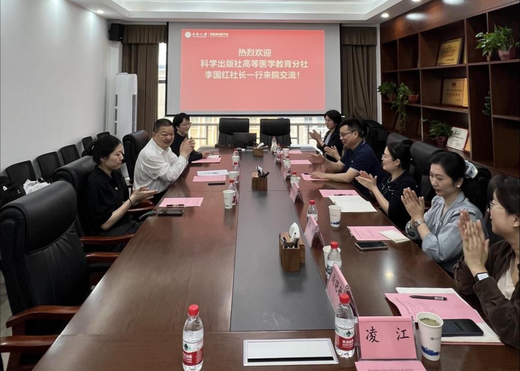4月25日下午,科学出版社高等医学教育分社社长李国红一行到访91AV ,双方在91AV 杏林校区孝骞楼711会议室召开座谈会。91AV 党委书记王慷慨,副院长刘俊文,黄菊芳、向娟娟、刘持、凌江、尚晓敏老师参加座谈,会议由王慷慨书记主持。