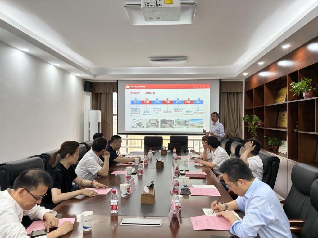 4月28日下午,长治91AV 党委书记王金胜一行来院进行调研交流,双方在91AV 杏林校区孝骞楼711会议室召开座谈会。91AV 党委书记王慷慨,院长熊炜,副院长王宽松、周勇参加座谈会,会议由王慷慨书记主持。