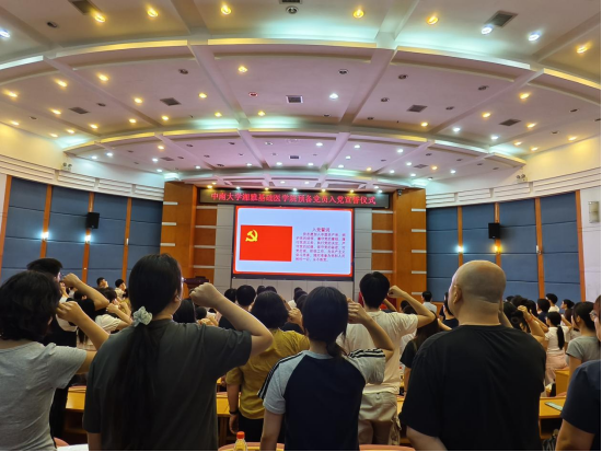 在院党委副书记冯虹同志领誓下,全体党员肃立面向鲜红党旗,以铿锵誓言作出神圣承诺。掷地有声的宣誓让每位党员经历深刻的思想淬炼,进一步筑牢对党忠诚的政治信念。