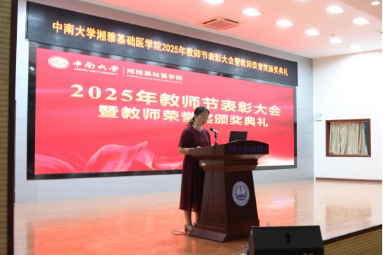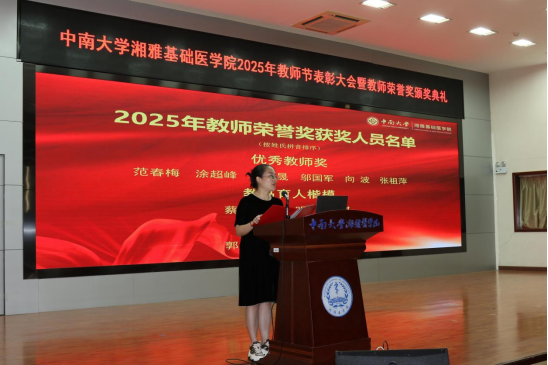 为全面贯彻习近平总书记关于教育工作的重要论述,有效落实《中共中央、国务院关于弘扬教育家精神加强新时代高素质专业化教师队伍建设的意见》,厚植尊师重教文化。9月10日,我院在91AV 杏林校区图书馆学术报告厅举行2025年教师节表彰大会暨教师荣誉奖颁奖典礼,会议由院党委冯虹副书记主持,91AV 领导、教职员工和学生代表参加会议。