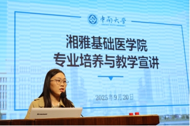 黄珊琦老师为全体新生讲述91AV 院史,详细介绍了91AV 自创立以来的发展历程、重要历史事件以及杰出校友,充分展示了老一代湘雅人的坚持与奋进、勇气与智慧,以及为培养高素质医学人才而持之以恒的严谨学风和求实态度。