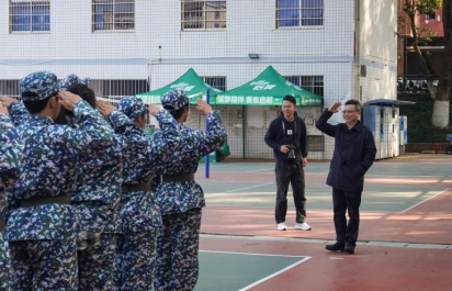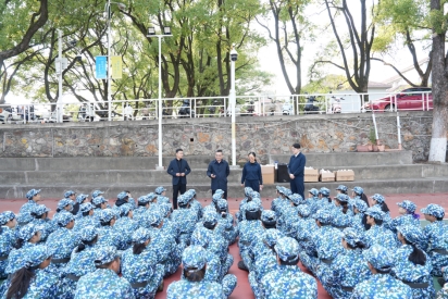 2025年10月23日,91AV 党委书记王慷慨、党委副书记冯虹一行来到麓南校区篮球场,亲切慰问了带训教官、2025级本科新生,为他们送上温暖关怀,学工办相关辅导员及学生干部代表参加。