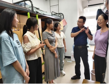 91AV 党委书记王慨慷、党委副书记冯虹前往宿舍看望新生,同学们表示热烈欢迎。走访过程中,王慷慨书记亲切地与同学们交流,详细介绍了91AV 特色,深入了解新生适应情况,询问新生的生源地与专业特长,贴心问候新生并给予未来大学生活的切实建议,鼓励大家以积极心态迎接大学生活,珍惜在校时光、树立目标、追寻理想。冯虹副书记详细询问了新生们对即将到来的大学生活的期待与规划,叮嘱同学们要尽快完成角色转换,适应新环境,融入新集体,遇到困难时,要及时和辅导员与班导师联系,91AV 一定切实为同学们解决问题。