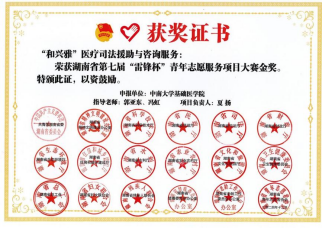 我院获湖南省第七届“雷锋杯”青年志愿服务项目大赛金奖