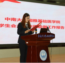 大会还听取并审议由湘雅基础91AV 第九届主席团成员李雨聪作的学生会工作报告。报告系统梳理了过去学生组织在学术创新、文化育人、志愿服务、权益维护等方面取得的成果,未来,91AV 学生会将不断完善工作机制,继续发扬团结协作、勇于创新的精神,为91AV 的发展贡献更多力量。