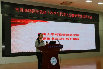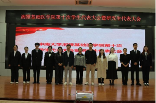 随后,湘雅药91AV 代表陈杨同学致贺词,她表达了对本次大会的热烈祝贺与期许,希望两院学子在今后的工作中进一步加强交流协作,携手并进,共同成长。致辞后,与会师生合影留念。