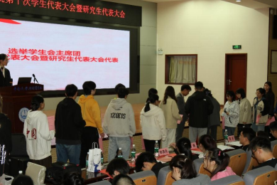 10月19日下午,91AV 第十次学生代表大会暨研究生代表大会在杏林校区图书馆报告厅顺利召开。91AV 党委副书记冯虹、91AV 学工办主任胡名益、91AV 团委书记周正、91AV 学工办刘莹莹及吴忆婷老师参加,会议由基医拔尖2401班崔舒同学主持。